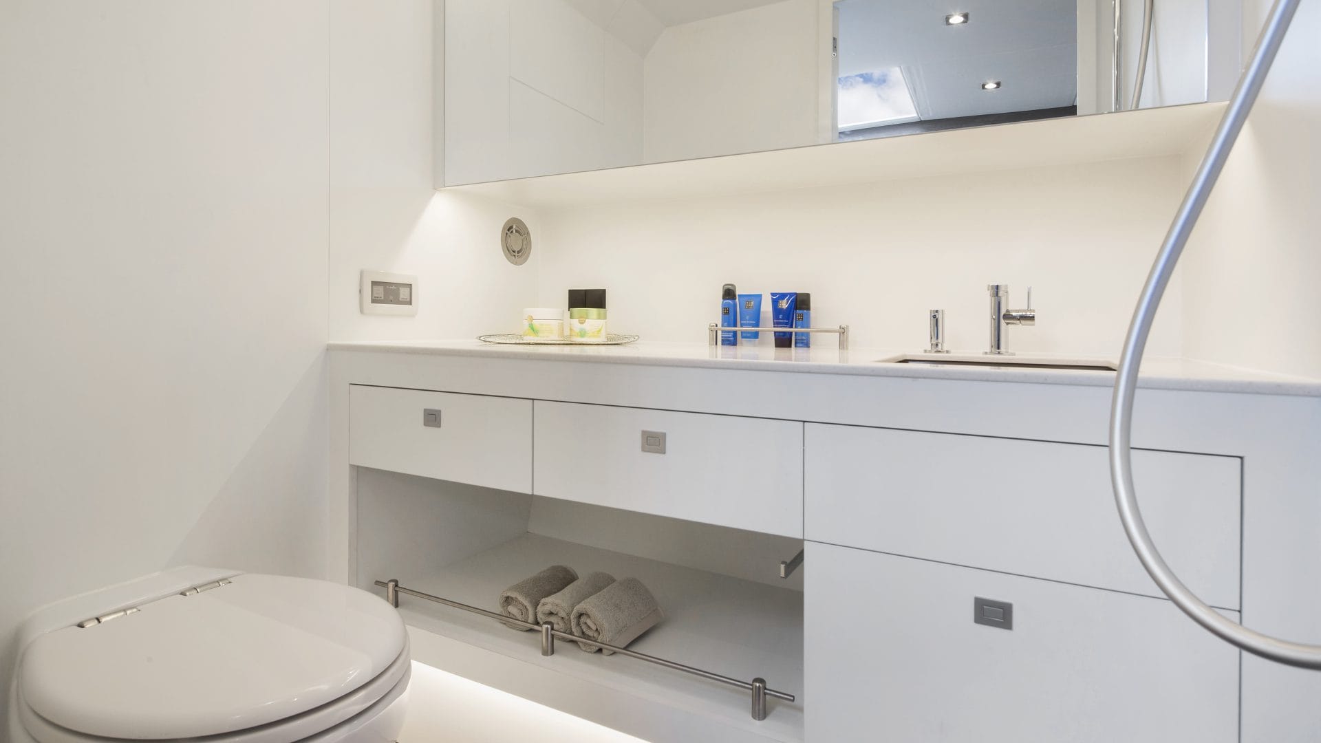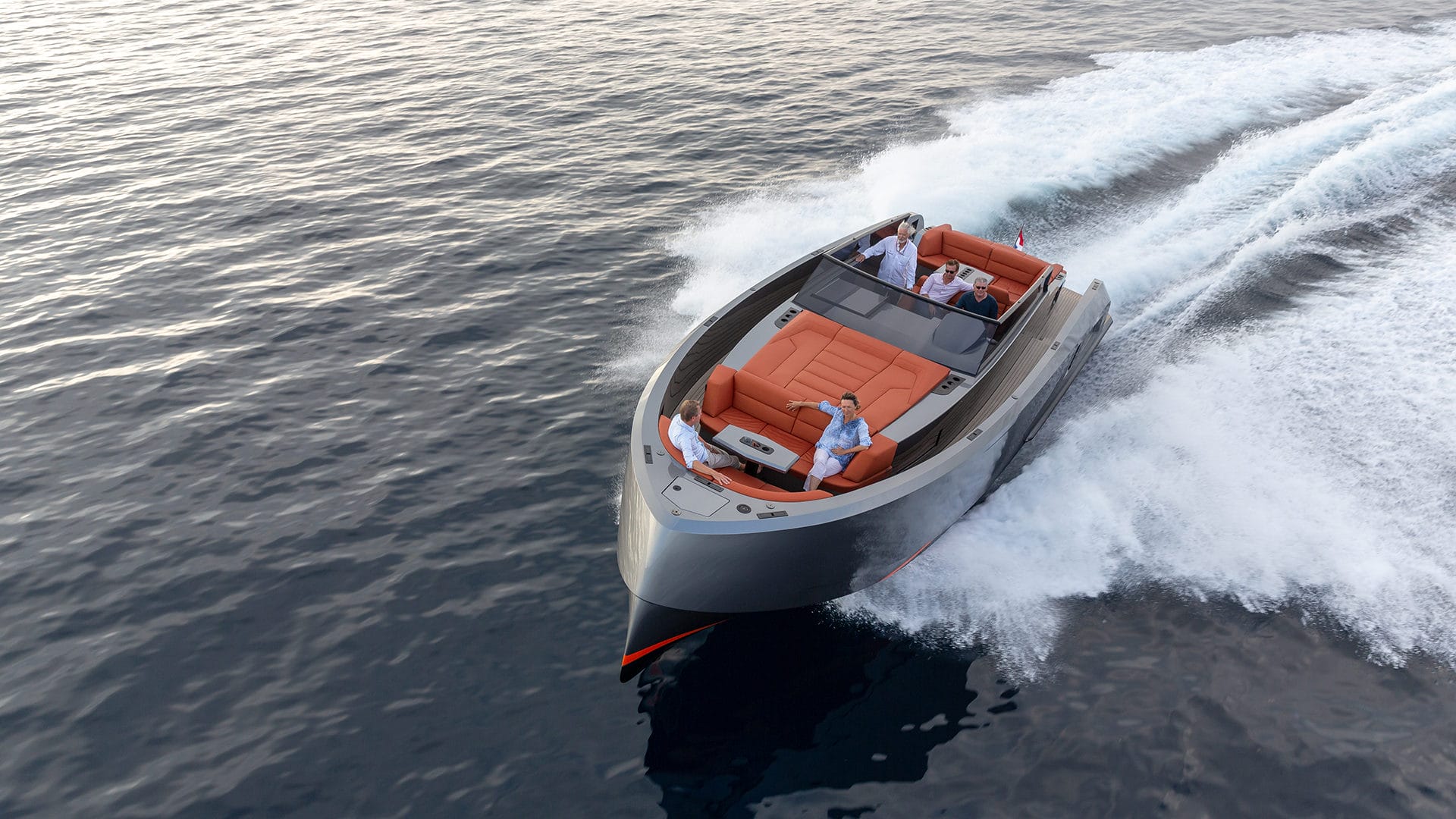 The Vanquish 45 accelerates to its máximum speed of 40 knots in record time with its 2 times 370hp engines and has a fuel consumption of 100 to 140 L / h. She accommodates up to 11 people.